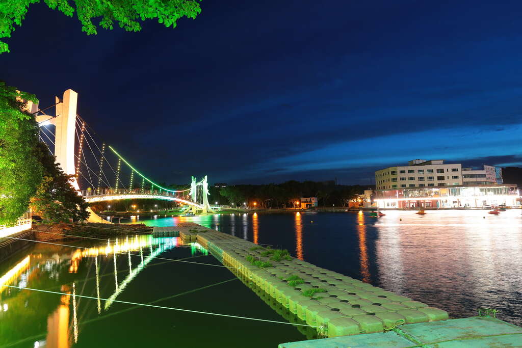 龍潭大池longtan Lake 在地文化風景畫 吊橋燈光秀與水上步道 撰風旅食